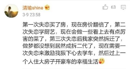 亲爱的姑娘,失恋千万别颓废,你也可以将伤心化作励志,让自己变得更美丽更健康。分手之后学了跳舞,重新谈了恋爱,或许再也遇不到会那么用力爱的人了,但是也要让自己幸福。