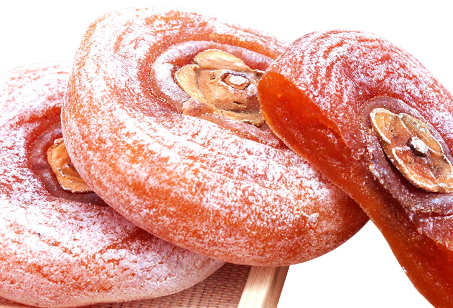 柿子饼上的白霜,入药也叫柿霜,有润燥、化痰、止咳的作用,堪称柿饼的精华,能治肺热燥咳,是晒制柿饼时随着果肉水分的蒸发而渗出的含糖分,即葡萄糖和果糖的凝结物。这个是可以食用的,白霜越多证明柿饼越好。