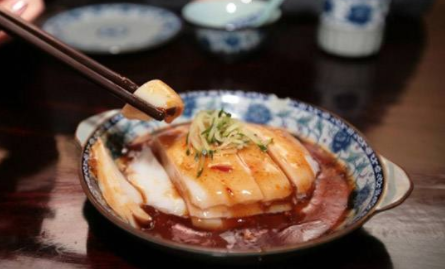 5、用刀切成小块,然后用芝麻酱作料,醋,蒜汁,辣油调制即成。