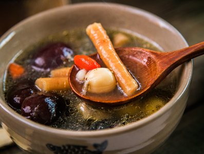 红蟹洗净、起壳、去鳃,切块备用。将切好的红蟹放入锅内,加入当归、黄芪、枸杞子、杜仲、黑枣及适量清水,再加入米酒,用文火焖煮约1小时即可。